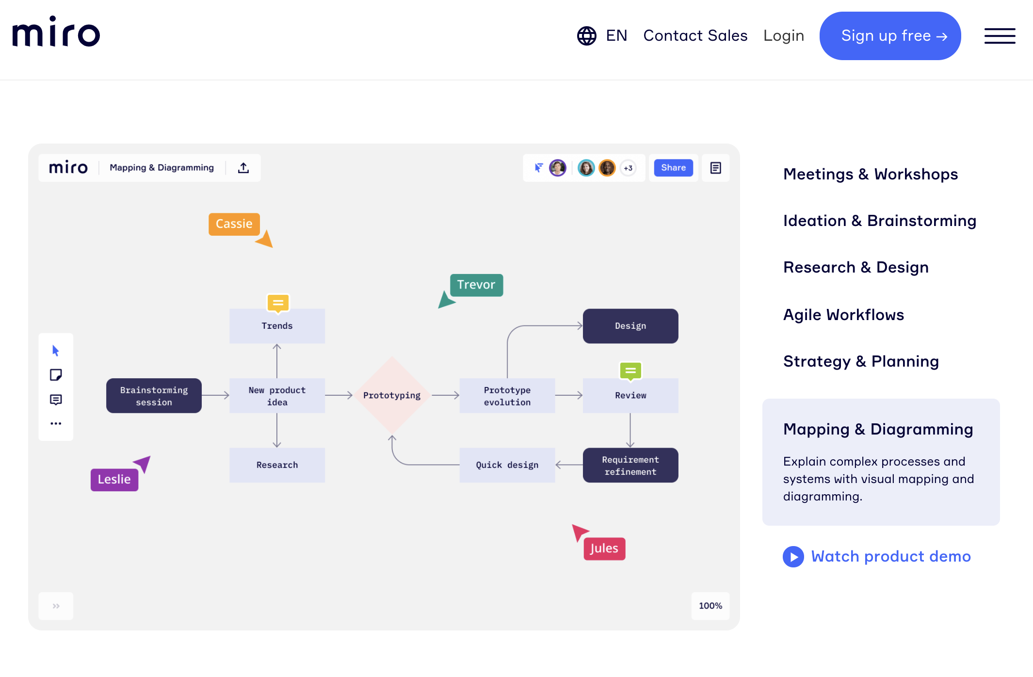 Its compatibility with other popular tools like Dropbox, Google Suite, JIRA, Slack, and Sketch will ensure you don’t lose time incorporating Miro into your workflow.