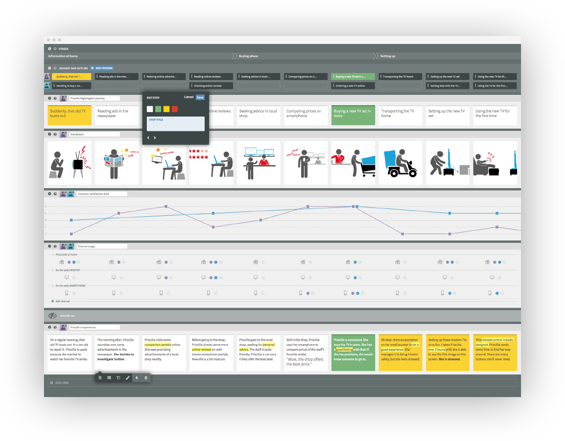 Created specifically for customer journey mapping, Custellence removes the hassle of trying to make general flowchart software work for your needs. Their templates are intuitively designed, which creates more versatility in depicting complex journey map ecosystems.